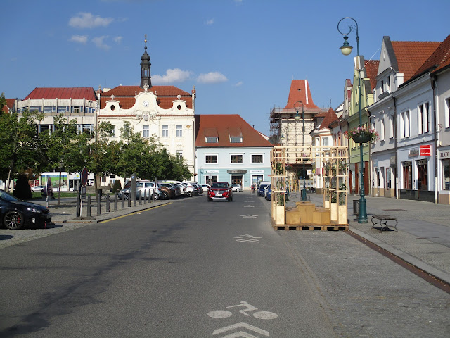 Doszedłem do dworca kolejowego w Berounie. Ha ha, już tu dziś byłem. Teraz idę w kierunku rynku. Jak miło znowu być w spokojnym, zadbanym czeskim mieście, przyjaznym pieszym i rowerzystom. Tuż za resztkami murów miejskich cukiernia z przemiłymi dziewczynami za ladą. Od takich chce się kupować! Kawa z lodami i bitą śmietaną nietania ale naprawdę pyszna. I nawet długopis mi pożyczyła (peropiska).